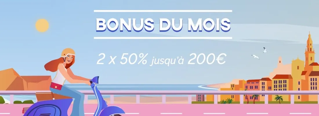 - deux bonus de 50% jusqu’à 200€ chacun, sur le premier et le second dépôts réalisés le jeudi 6 mars 2025;