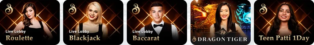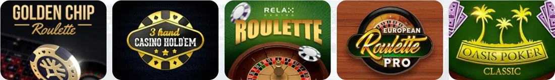 La diversité est bien au rendez-vous, avec des salles de roulette, Blackjack, Baccarat, Pachinko, Fan Tan, Sic Bo, Dragon Tiger, Poker ou encore Teen Patti. Les jeux inspirés des divertissements TV sont aussi présents, tels que Funky Time, Cash or Crash, Dream Catcher ou encore Deal or No Deal.